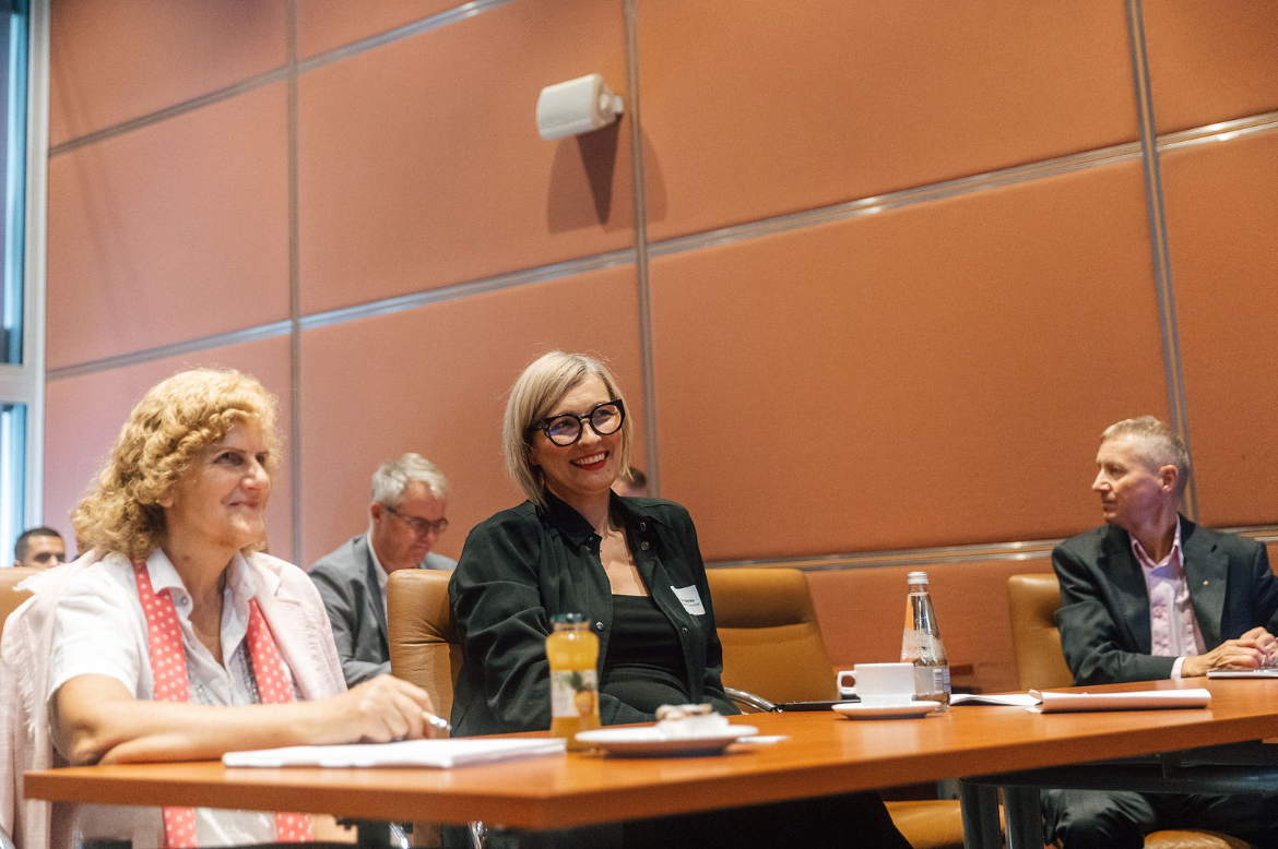 Osrednja sporočilnost, ki jo je povzela tudi Leila Behjat (DEMO, NTNU), je bila pomen celovitega sistema podpore: od tehnične validacije, preko poslovne priprave, do finančnih mehanizmov, ki podjetjem omogočajo ne le obstanek, ampak tudi preboj in rast. Leila Behjat je poudarila pomen upravljanja z zaupanjem v mrežnem okolju, kjer kakovost sodelovanja določa hitrost implementacije inovacij. Leila Behjat, strokovnjakinja Healthy Materials Lab EU, je v svojem nagovoru poudarila pomen materialnega zdravja, transparentnosti dobavnih verig in vključevanja ekološko preverjenih materialov in praks že v fazah oblikovanja projektov. Poudarila je, da je za MSP izjemnega pomena, da imajo dostop do teh informacij, standardov in materialov, saj kakovost in zdravje materialov postajata del konkurenčne prednosti. Osrednja sporočilnost, ki jo je povzela je pomen celovitega sistema podpore: od tehnične validacije, preko poslovne priprave, do finančnih mehanizmov, ki podjetjem omogočajo ne le obstanek, ampak tudi preboj in rast. Leila Behjat je poudarila pomen upravljanja z zaupanjem v mrežnem okolju, kjer kakovost sodelovanja določa hitrost implementacije inovacij.