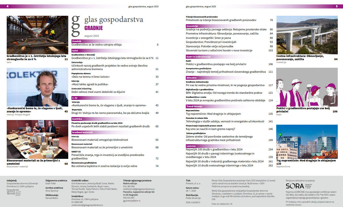 Gospodarska zbornica Slovenije v novi številki lastne tiskane in e - revije, GLAS GOSPODARSTVA , v posebni tematski poletni izdaji predstavlja ključne ugotovitve in opozarja tako na aktualne kot na kritične trende v gradbenem sektorju. Osvetljuje se izzive in razmišlja o poti naprej. Ekipa oddelka Z...