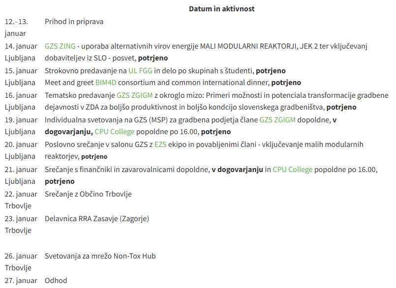 Predlagan okvirni razpored gostovanja v Sloveniji (12.–27. januar 2026):
