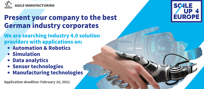Pomurski tehnološki park ponujam priložnost, da se slovenska podjetja predstavijo uglednim svetovno znanim nemškim korporacijam, ki iščejo ponudnike tehnoloških rešitev na področju INDUSTRIJE 4.0 (avtomatizacija in robotizacija, simulacija, analiza podatkov, senzorske tehnologije, proizvodne tehnologije)