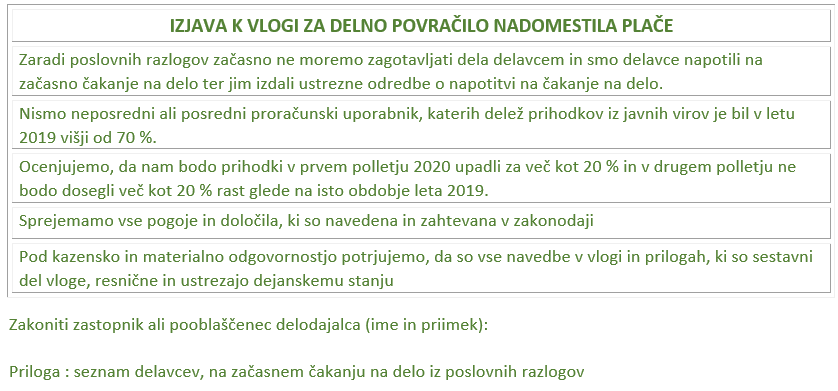 Nujni podatki za izpolnitev vloge za POVRAČILO NADOMESTILA PLAČE DELAVCEV NA ZAČASNEM ČAKANJU NA DELO IZ POSLOVNIH RAZLOGOV